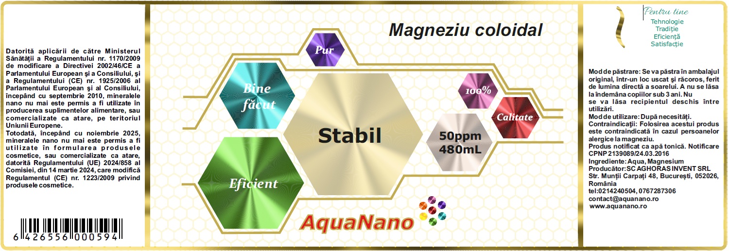 Magneziu coloidal, Stabil, 50ppm