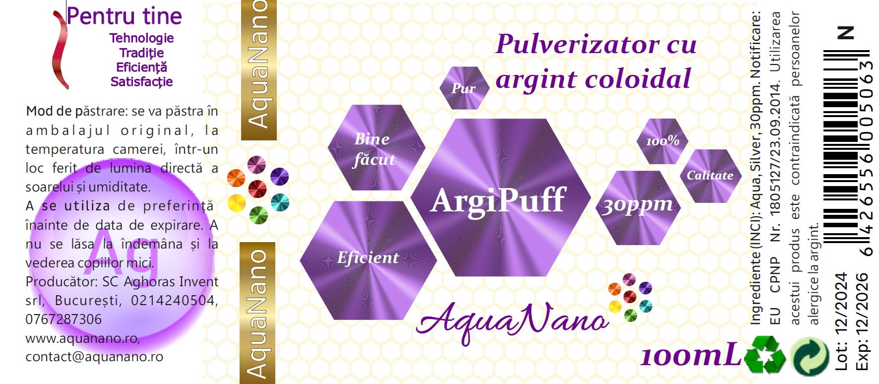 AquaNano-Argipuff, spray cu argint coloidal, 30ppm, 100ml