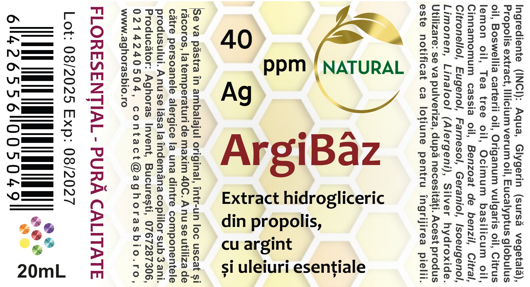 ArgiBâz, atomizor cu argint, propolis și uleiuri esențiale, tip spray sau nazal, 20ml
