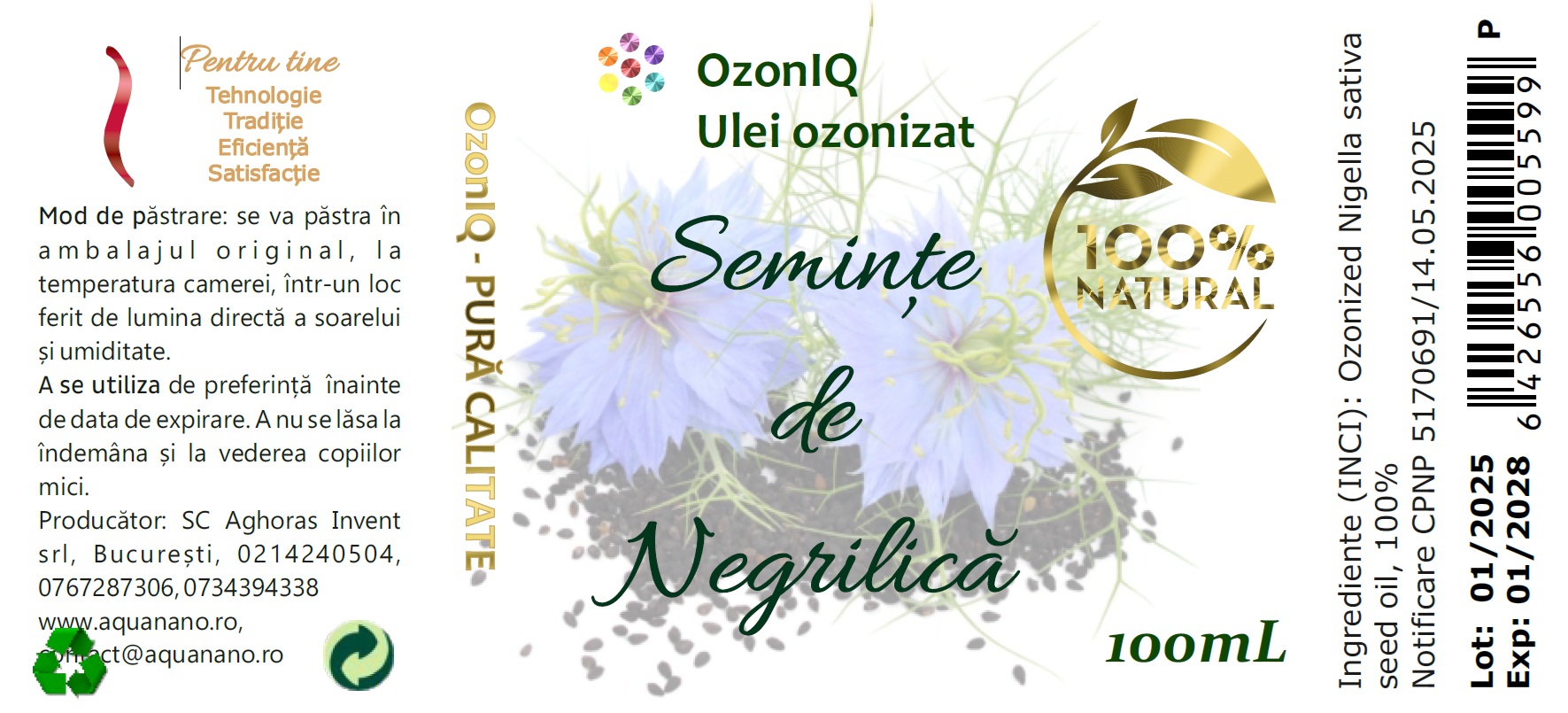 Ulei ozonizat din semințe de negrilică, OzonIQ, 10/100mL